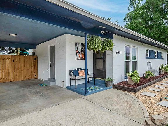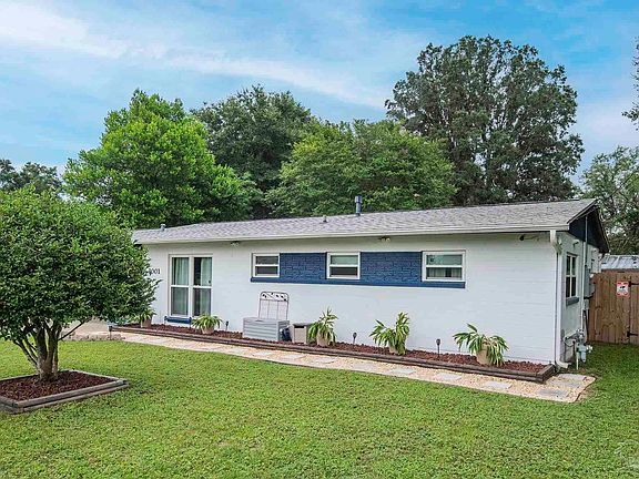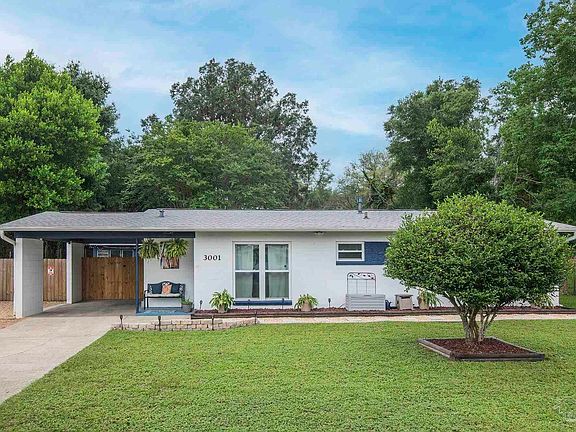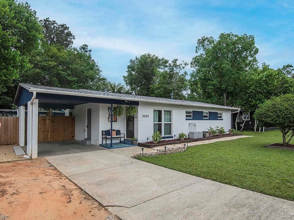 This unique Northeast Pensacola home offers ultimate convenience and comfort. This home is perfectly situated with closeness to shopping, restaurants, schools, college and the Sacred Heart Hospital. The interstate 10 on ramp is just a short drive. Check out the features below: • Layout and Design: The home features a functional floor plan with 3 bedrooms and 2 baths, ensuring no space is wasted. Luxury vinyl flooring in the living room and hallway, while the kitchen and baths are tiled, and bedrooms are carpeted. • Kitchen: The spacious kitchen is equipped with stainless steel appliances, Corian countertops including a breakfast bar, and French doors leading to the backyard from the dining area. • Bedrooms and Bathrooms: Down the hallway, three spacious bedrooms include a large master bedroom with an en-suite bathroom. One guest bedroom is connected to the dining area via a barn door, offering versatility as a playroom, den, home office, or guest room. • Upgrades: Both bathrooms feature newer vanities and light fixtures, enhancing their appeal. • Outdoor Features: The highlight of the home is its fully fenced backyard, designed for relaxation and entertainment. It includes a large concrete patio with a winch-controlled canopy, a graveled area with inset pavers, a fire pit gathering area, and ambient string lights. Two large mature Crepe Myrtles give plenty of shade. • Accessory Building: There's a 31 x 20 (620 square ft)l accessory building with power, ideal for various uses such as a game room, craft room, or indoor bar. Additionally, there's a separate storage area ideal for a workshop.. • Parking: Parking is convenient with a 1-car carport, an extended gravel driveway, and a separate area with RV hookups and a double gate leading to the backyard. This home offers endless possibilities for both comfortable living and entertaining, making it a desirable choice in Northeast Pensacola.
