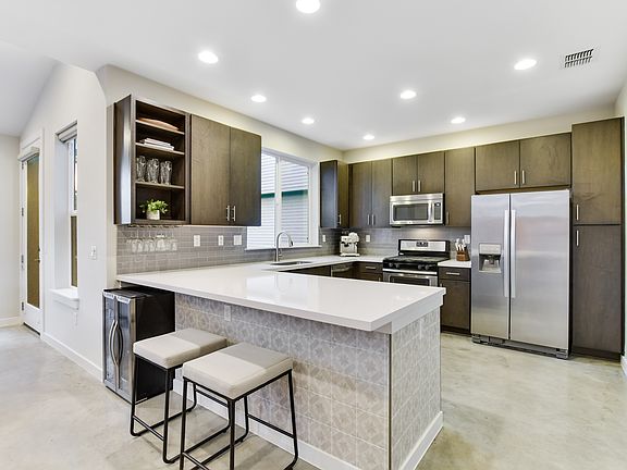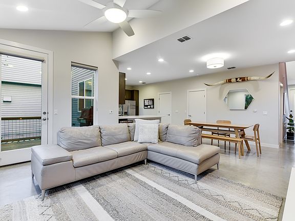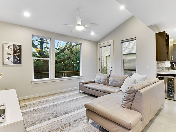 Completed in 2014, this PSW/StoryBuilt stand-alone home is equipped with modern features including energy-saving solar panels, spray foam insulation, a Nest doorbell, and smart thermostats. The open floor plan has vaulted ceilings and big picture windows, providing beautiful natural light and lush tree views. Upgrades are found throughout the home such as designer paint, custom tile, charming wallpaper, and wood accents contributing to the home's inviting character. Relax or entertain on the 200 SqFt deck and enjoy the stunning heritage oak tree and low-maintenance landscaping across the yard. A smart irrigation system, landscape lighting, and limestone steps further create a tranquil escape in the middle of Austin. Nestled among the trees and across the street from Tom Lasseter Park, the Canopy community is an escape into nature in the middle of South Austin's most popular neighborhood. Enjoy nearby attractions like Matt's El Rancho, Patika Coffee, Phil's Ice House, Papalote Tacos, and more! A must-see if you are looking for relaxed, convenient downtown living that is environmentally friendly and lovingly cared for by the original owner.