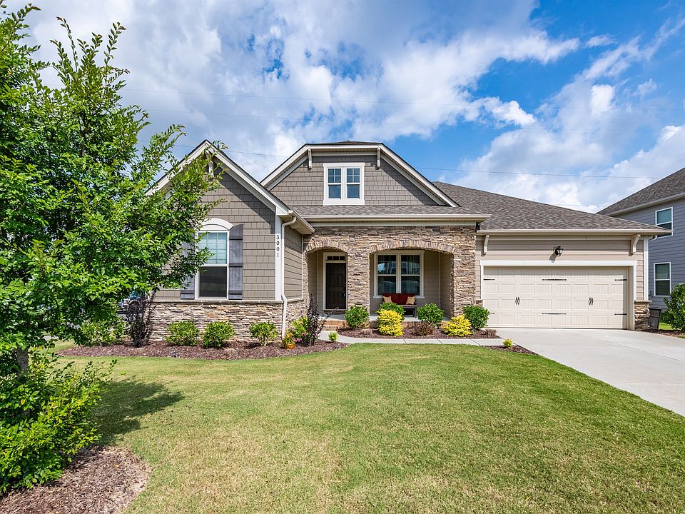 MUST SEE MOVE-IN READY RANCH IN UNION GROVE!!! Perfectly situated in the community of Union Grove, this beautiful ranch three bedroom, two full bath home will check off all boxes. Notice the beautifully maintained yard as you approach. As you enter, notice a lovely front porch perfect for a sitting area. The dining room to the right offers several options. Two spacious bedrooms to the left share a full bath. The large family/living room has gas log fireplace. This open floor plan concept is ideal! The gourmet kitchen has so much to offer, incl. gas range and large island with seating. The master is separate from the other sleeping areas. The large master bath with gorgeous finishes includes a garden tub and shower and walk-in closet. Garage has painted floor. Situated on a large corner lot a very short walk to amenities, you can see the Community playground from the rear of the home. Grill-out on your back patio with your friends in this wonderful community just waiting for you.