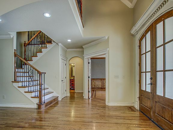 Private gated community in South Tulsa situated close to the popular Arkansas River with conveniently located parks, trails, restaurants and shopping this thoughtfully designed and decorated 5 bedroom home has flexible spaces, upscale amenities and a dream backyard perfect for a "staycation" with pool, spa, and outdoor grilling area. Beautiful Chefs kitchen with dual ovens and dishwashers and custom cabinetry flows to the family room with rich hardwoods and millwork and to the formal dining and study. Impressive mudroom/laundry room. Guest suite down with private bath and pool access. Private and luxurious master with pool and patio access. Game/media room plus 3 bedrooms up. Upstairs "study" is perfect as a second office or classroom. Tile and/or hardwood throughout the first floor, stairs and upstairs office. Safe room in garage. Professionally designed, yet easily maintained, landscaping surrounds the pool and spa and accents the front.