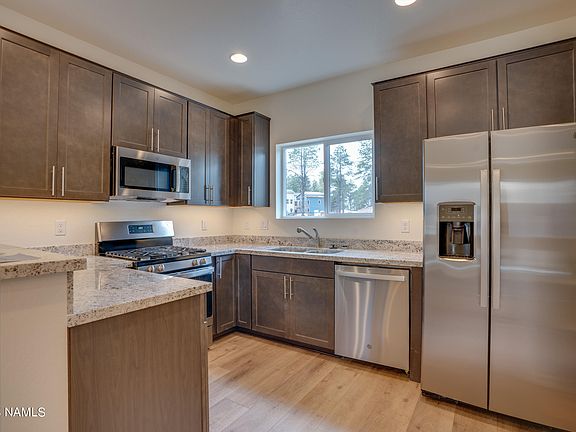 No waiting, no expensive construction loan fees, this home is ready to move in! Woodshire at Butler is situated in an incredible location, near so many of Flagstaff's most popular dining and shopping locations. The community is surrounded by tall, inviting Ponderosa pines just waiting to be explored. Take in the forest views from the private enclosed balcony off the primary suite. Woodshire also welcomes short term rentals! This home features a great floorplan w/ kitchen and living space below and bedrooms/laundry upstairs. Luxury vinyl throughout. This home has central air for those warm summer days and on-demand water heater for unlimited hot water. Act now and enjoy the beautiful Flagstaff fall weather while it lasts! *Iinvestment buyers only - seller will carry with 20% down at 6.99%