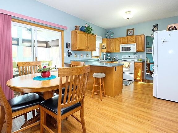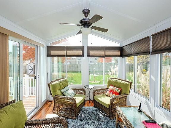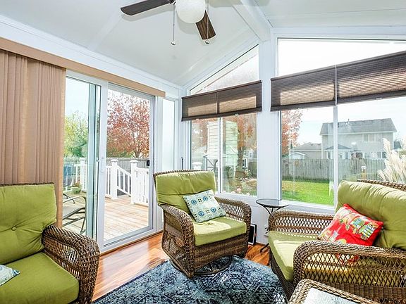 Welcome home! This well-maintained two story is sure to impress. Drive up to the home and the first thing you notice is the well-landscaped front yard. Enter the home to the voluminous foyer with soaring ceilings. The main floor boasts updated laminate flooring, dining area, and living room with beautiful FP. You'll absolutely love the sun room just off the kitchen that is heated/cooled and is a great room to enjoy that morning coffee. A 1/2 bath and dining area round out the first level. Upstairs are 3 generous bedrooms with the master suite having a jet tub and walk-in closet. The hall bath has double vanity as well. The basement is finished and has a wet bar, laminate flooring and still has tons of storage. Out back you'll notice the PVC deck railing that is practically maintenance-free, more beautiful landscaping and a storage shed. New windows in the last 3 years, new furnace & A/C in 2015 and roof is only 5 years old!