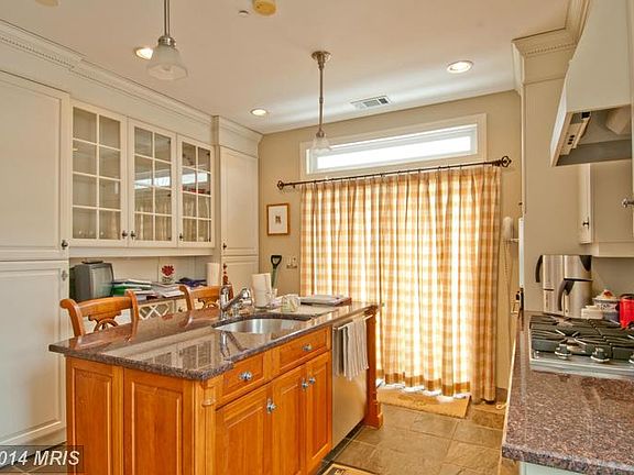 SHORT SALE!! One-of-a Kind End-of-Group Beautiful Townhouse! Curved front staircase. Servants staircase from kitchen, Pocket doors in living room. Gorgeous hardwood floors. Contemporary kitchen w breakfast bar banquette, built-ins, fireplace. Fully finished lower level family room wbuilt-in bookcases. 23 NEW WINDOWs, NEW ROOF! Zoned AC. 3 decks, Dual Zoned. SEE TODAY! AS-IS.