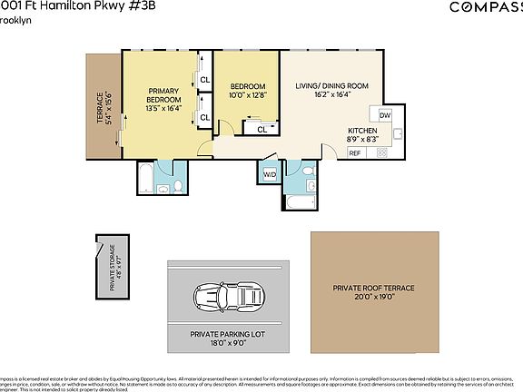 Location! Parking! Private Roof Deck! Located in a boutique elevator building in Windsor Terrace, this bright 2-bedroom, 2-bath condo awaits. Inside, the home features an open-concept living and dining area that flows seamlessly into a stylish kitchen with a breakfast counter, stainless steel appliances, and a chic tile backsplash. The spacious primary bedroom offers direct access to a private balcony, while the showstopping roof deck (one flight up) invites al fresco entertaining. Additional highlights include a deeded parking space and a prime location just three blocks from the F/G subway and just moments from Prospect Park. Required Fees: First Month & Security Deposit Parking Spot: $250/month