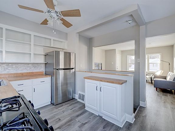 Located on a spacious corner lot in the lower beaver neighborhood on the north side of Des Moines, this delightful 2-bedroom, 1-bath home is a unique blend of comfort and potential. The property boasts a fully fenced yard, offering privacy and ample space for outdoor activities. The living area, illuminated by butcher block counters, gas oven and new flooring throughout, provides a warm and inviting atmosphere. The efficient open kitchen concept is perfect for both cooking and entertaining.