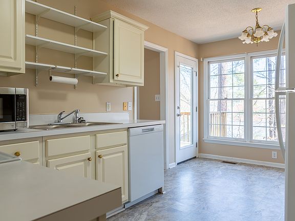 Near Centennial Campus, on quiet cul-de-sac. Easy access to I-40. Spacious eat-in kitchen. Large Living/dining room with gas fireplace. Large Master Bedroom with double vanity, walk-in closet, separate toilet/bath area. Bonus room upstairs; upstairs Bedroom with full bath. Deck on wooded backyard. Just renovated, sparkling clean! One year lease. Deposit and first month's rent due at signing. Renter pays all utilities. Renter responsible for minimal yard upkeep.