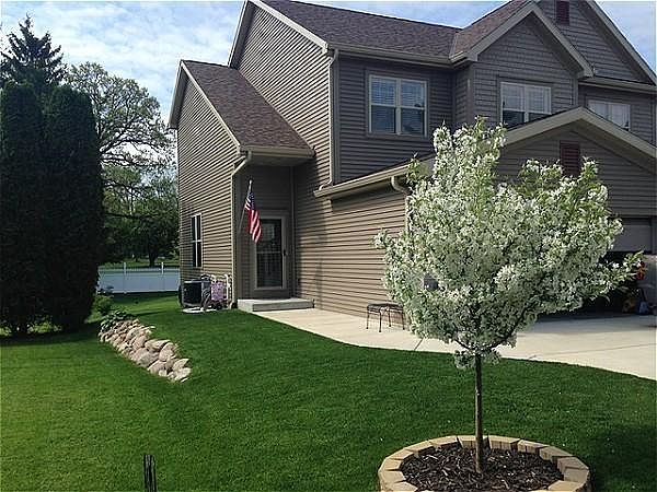 Executive Style condo living! Move right in to this exceptionally designed, almost new, home in a two unit complex. All the details in design and decorating with quality granite counter tops, high end cabinets, luxury flooring and carpet, gas fireplace with natural stone, plantation shutters, and wainscotting are only a few of the upgrades. Nicely finished lower level provides numerous possiblities for use including entertaining or an office. Beautiful deck to enjoy the sunsets with a sunsetter awning. Walking distance to community events and shopping.