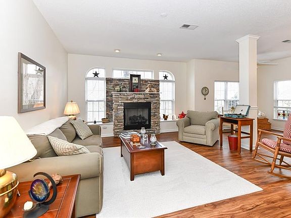 A pleasure to show this fabulous 2 Bedroom, 2 full bathroom condo. Move-in condition!! Bright, open concept with new LVP flooring and new carpets throughout the main living areas and bedrooms. Freshly painted throughout plus 2" blinds. Living rooms opens to dining area and offers a gorgeous stone fireplace with gas logs and window seating. The kitchen has light 42" cabinets, breakfast bar, refrigerator which conveys, built-in microwave and walk-in pantry. Spacious primary suite with walk-in closet, garden tub and opens to the screened in porch with a storage closet and secondary entrance to the home. Conveniently located to shops, parks, trails and the Urban Loop. Roof was replaced in 2023. Heat Pump 2013.
