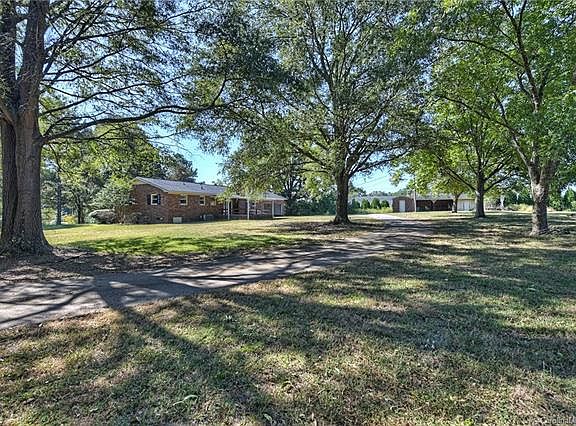 This full brick home was built on large 5 acre tract with privacy and no HOA restrictions. Tree lined driveway with a row of pecan trees on the back side of the house. This 3 BR, 2 BA home has a spacious Kitchen and Dining area that opens to the large Family Room with a gas fireplace. Master Bedroom has private Bath with walk-in shower. BR 2 & 3 share a full Guest BA w/Dressing Vanity and linen Closet. Attached carport has storage. Well house has a workbench and can be used for small storage. Detached tractor shed has 2 bays and additional storage that can be used as small workshop. Well on the property dedicated to the Garden area. Property being sold as-is.