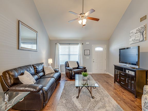 Desirable 2 bedroom, 2.5 bath End Unit Townhome in a beautiful neighborhood close to shopping and dining. This home features an open floor plan and floored attic space. Kitchen includes stainless steel appliances, granite countertops and backsplash. Primary bedroom is on the Main floor with full bath. Covered front porch and private courtyard back patio. You can walk out your back patio door to the neighborhood pool just a few steps away. Kitchen refrigerator, washer and dryer convey with the property.