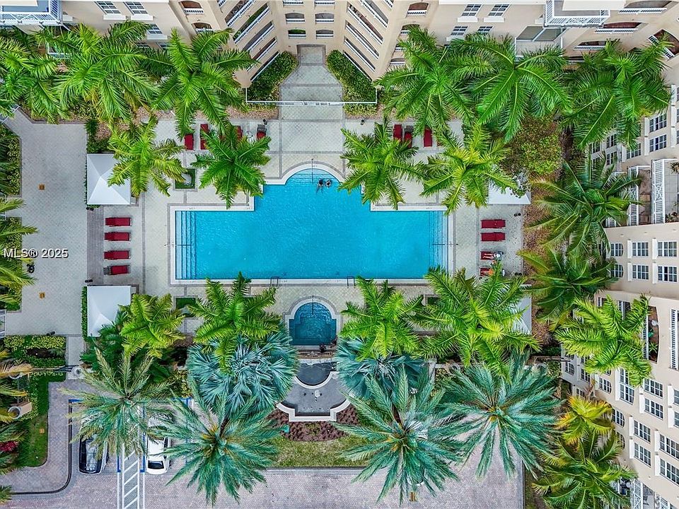 Swimming poolGated entryGranite countersHigh ceilingsHeated spaCorner unitPorcelain and wood floors