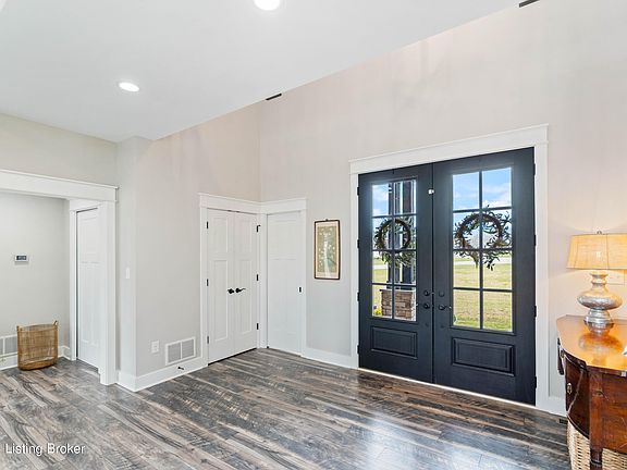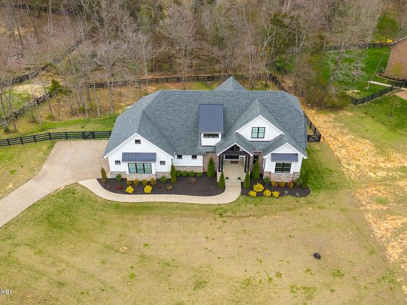 Introducing 3001 Oak Run Ct, a stunning walkout farmhouse ranch nestled in Crestwood, KY. The impressive front porch and twin double glass entry doors welcome you into a bright and airy space. Built just four years ago in 2020, this home still exudes the freshness and charm of new construction. The inviting open floor plan is bound to captivate.