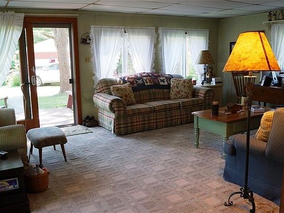 Live, Love, and Laugh at Leesville Lake! This adorable one floor plan cottage offers weekend and/or full time living! Upgrades include 3-LG wall heat pumps offering efficient central heat and air to the home (2019), water softener and on demand hot water tank (2021), new deck with awning in 2020, dimensional shingles (2016), septic system (2017), exterior door (2020) plus newer siding and windows. Most recent updates are: stackable washer dryer, metal roof and rain gutters with leaf guards on house in 2024 with a new metal deck/porch roof coming next week plus 2 new garage doors with auto openers in 2024! Spacious living room/sun room with wall-to-wall windows! Large eat-in kitchen and dining area features a free-standing wood burner. Two car detached garage with storage area. 10x12 storage shed. Situated on 3 nice and level parcels of land that you own! No lease fee. House and garage come mostly furnished. Leesville Lake offers 1000 acres of the best muskie fishing around!