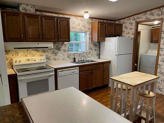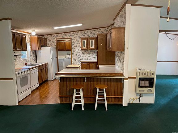 Well maintained 3 bedroom 2 bath doublewide mobile home with fireplace and butane heater with 100 lb. tank for back up heat sources, breakfast bar, standard kitchen appliances, and convenient moveable kitchen island. Newer hot water heater. New metal roof in 2017. New sliding back door in 2023. Nice decks in front and back to enjoy nature, visit with friends and family, or grill meals. Washer and dryer in laundry room conveys with property. Two vehicle moveable carport and two storage buildings on property also convey. Call me today for your personal tour. Agents See Remarks**