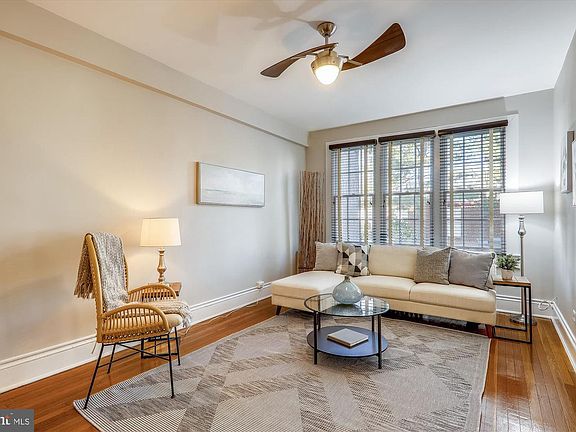 What could be better than living in the heart of Cleveland Park! Freshly painted and updated, this light filled one-bedroom rear, corner unit invites you to linger. Built-in shelves, gleaming hardwood floors, high ceilings and large, replaced windows greet all upon entering the welcoming foyer. The large living room is the perfect place to entertain, while the updated eat-in kitchen features state of the art, professional grade appliances. Showcasing closets with Elfa systems and multiple windows the bedroom is quiet and restful. Wake up to views of the delightful rear and side yards complete with vegetable, herb and flower gardens. Included in the secluded oasis are a community grill and picnic table - perfect for hosting small gatherings or enjoying the solitude with a good book. Don't miss the laundry room and extra storage space on the lower level. The nearby Cleveland Park Metro is just two blocks away and stores, restaurants, farmer's markets, Rock Creek Park, walking and biking trails and community gardens are all nearby. Live in a quiet neighborhood while enjoying all that Cleveland Park has to offer. The low co-op fee in this well-maintained building includes taxes, heat, gas, water, laundry, bike storage, building maintenance and reserves. There is no underlying mortgage. Rental parking is available