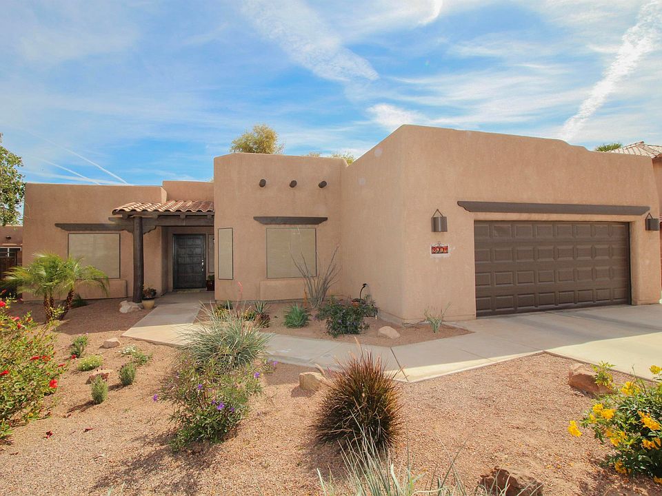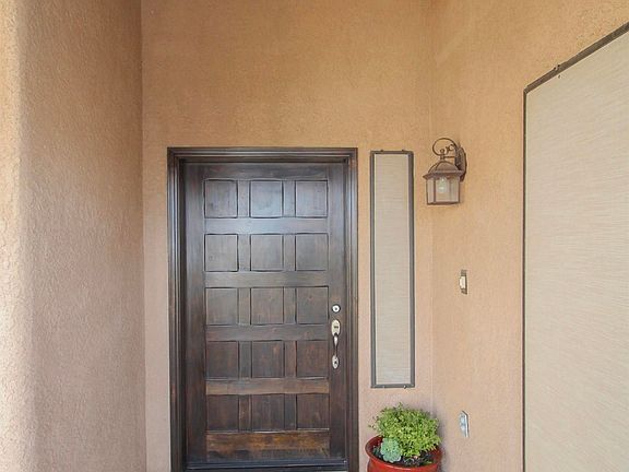This well maintained and beautifully updated Barkley Ranch Home will not disappoint! Drive up to see stunning curb appeal with this santa fe style property! Inside this great room floor plan you will find 3 big bedrooms and 2 bathrooms. Walk through the large solid wood front door and into an updated space with elevated ceilings, can lighting, wood plank tile floors throughout, and so much more! The large kitchen has tons of cabinet space, quartz counter tops, stainless appliances, deep single sink, pantry, gorgeous backsplash and breakfast nook area! The kitchen overlooks a large living room with wood accent wall and space for a formal dining if desired. The primary bedroom is gigantic with enough room for a king size bedroom set as well as a seating area or office space! The primary’s en suite bathroom features double sinks, soaking tub, step in shower, and large walk in closet! Enjoy the backyard paradise from under the covered patio that overlooks a generous sized yard featuring a refreshing pool, grass area, play set, and even a stucco built storage unit! In addition to the oversized 2 car garage there is concreted side parking through double gates that give plenty of space for the toys, RV, or trailer! Move in with confidence knowing there is a recently installed roof system and newer A/C unit! This home has it all and is ready to for a new owner! Please call for your private viewing today!