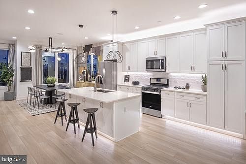 Don't miss your opportunity to be part of this unique, waterfront community! Toll Brothers at Northbank is our newest, luxury community of bilevel townhomes. This one-of-a-kind community combines the convenience of city living and the incredible views of the Delaware River and the Ben Franklin Bridge. Enjoy a stroll on the walking trail along the riverfront. Located within minutes to some of the finest restaurants and hot spots of Fishtown. The Moyer is our upper-level, interior unit. Take in the views with our rooftop terrace! 9' first and second-floor ceilings add to the appeal and grandeur of this townhome. Park your car in this attached, single car, rear entry garage. Overflow street parking is also available for you and your guests. The kitchen has a generously sized island that is open to the dining room and the expansive great room which leads to a covered deck. Work from home? Two Additional Flex spaces on the main level offer the opportunity to set up a private workspace. The spacious primary bedroom features an additional covered deck. The primary bath includes a double vanity, seated shower, and separate water closet. The primary bath leads to a large walk-in closet. Condo ownership adds to this low-maintenance lifestyle. Exterior building maintenance is included along with snow removal, trash removal, lawn maintenance, walking trail, and common areas. Buyers can take advantage of a full 10-year tax abatement. To learn more, schedule your appointment today. Sales Office Open Monday 3pm-6pm, Tuesday-Sunday 11am-6pm. Pictures are just representations and are not of the actual models.