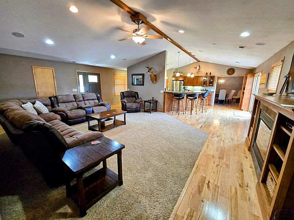 Exceptional 7-Bedroom Home on 55 Acres with Shop, Sport Court, and Seclusion Near Wheeler's Point. Located less than 5 minutes from Lake of the Woods and Wheeler's Point and less than 15 minutes to Baudette. This home is very well-maintained and offers 4,652 sq ft. The location is the perfect balance of seclusion and convenience. Set on 55 picturesque acres off the highway and a long driveway, this property provides a private escape yet just minutes from Lake of the Woods, nearby resorts, restaurants, and bars. Built in 2008, this spacious home boasts 7 bedrooms, 4 bathrooms, and an array of features. With vaulted ceilings, an expansive living and family room, and in-floor heating throughout, this home offers unparalleled comfort and style. The large kitchen and dining area provide the ideal space for family gatherings, while the attached, insulated, and finished 2-car garage ensures convenience and storage space. For the sports enthusiast or entertainer, this property is a dream come true. A 30 x 40 sport court provides ample space for basketball, volleyball, or indoor play, making this a perfect place for all seasons. In addition to the main house, the 48 x 40 shop, built in 2013, is a standout feature. With in-floor heat, a new boiler, and 16’ sidewalls, it offers plenty of room for all your hobbies or equipment. It also includes a bathroom with a shower, shelving, and both 12’ and 14’ overhead doors—ideal for storing large vehicles, boats, campers, or equipment. A floor drain makes it easy to maintain, while the well-thought-out design of the shop ensures functionality and space for whatever your heart desires. The land itself is a nature lover's paradise, with mostly wooded acreage, enclosed deer stands, food plots, and trails winding through the property, offering excellent hunting opportunities. A serene pond further enhances the beauty of this setting, making it an outdoor enthusiast’s dream.