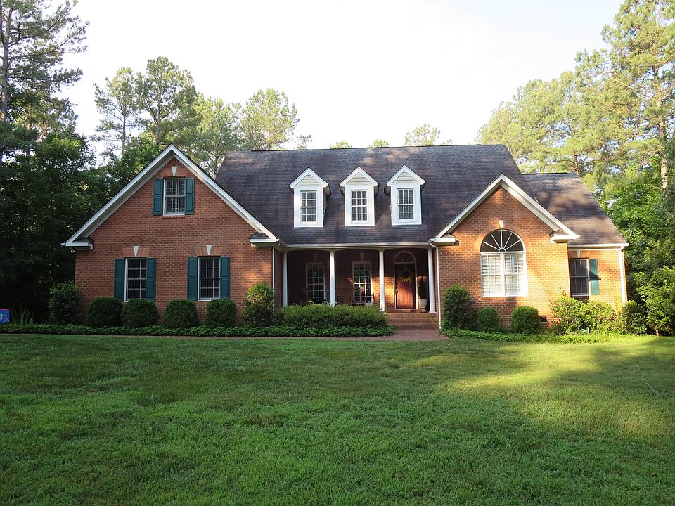 Custom built brick Cape with open floor plan. Over 400 feet of lake frontage. Oak hardwood flooring throughout the first floor. Ceramic tile in all 3 baths. Updated Kitchen with Quartz counter tops, stainless appliances and custom cabinets with center island. Kitchen opens to family room and features breakfast area with lake view. Master bath has vaulted ceiling, jetted tub and separate shower. Master Bedroom has crown molding and walk-in closet. Crown molding and chair rail in Dining Room and Hallway. Family room has built in bookshelves, gas Fireplace and vaulted ceiling. Second floor features two large bonus rooms, bedroom and 3/4 bath with shower. Exterior is all brick including front porch and back porch floors. Double pane thermal windows. Paved 400 foot driveway leads to large parking area and two car garage. 4.96 acre lot is mostly wooded with hard woods and large pines.