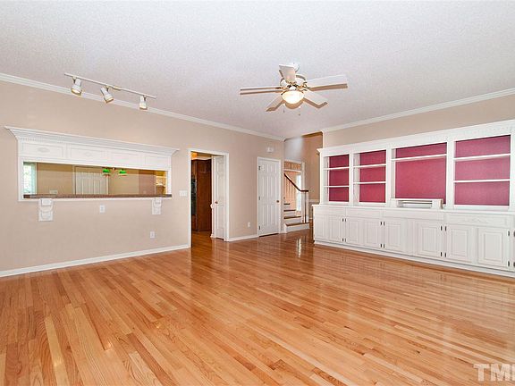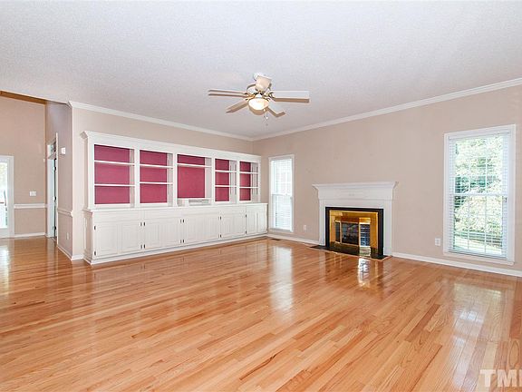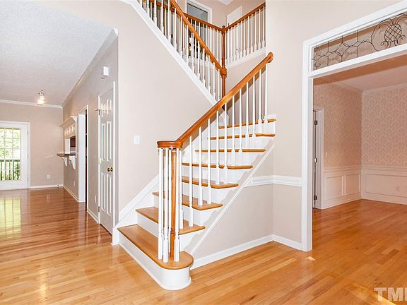 Move in ready 4 bdrm home on private wooded cul-de-sac lot. Backs to Neuse River Greenway. Lovely hdwds on main flr (except LR), 9' ceilings, transom doorways, formals, lrg fam rm w/frpl, custom built-ins & access to the screened porch. Kit offers island/bar, lots of cabs & granite counters & a breakfast area w/access to the lrg 2 tired deck. Spacious master has plantation shutters & private bath w/dual vanity, whirlpool tub, sep shower & his/hers walk-in closets. Conv to I-540 & Triangle Town Ctr