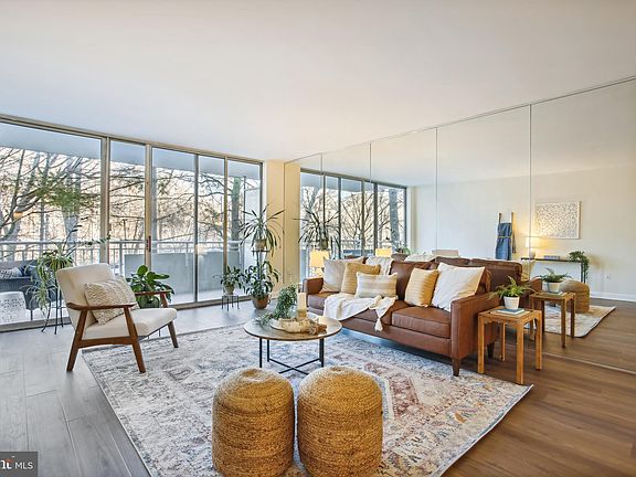 Tucked off Connecticut Avenue in the heart of the city, this turnkey Van Ness North co-op offers every amenity for the buyer seeking the perfect blend of urban living and access to nature. The interior is saturated with natural light, overlooking Soapstone Valley, part of Rock Creek Park. The kitchen was extensively renovated in 2022 with upgrades this year including luxury vinyl floors throughout and modern lighting. The fabulous new kitchen has a stunning backsplash, professional-series appliances, a pantry, and a peninsula with seating for two. The primary living space includes an expansive living room and a dining area enhanced with mirrored built-ins. The large balcony is so inviting and is perfect for enjoying the warm spring weather that is just around the corner. The owner’s suite features ample space for a king-size bed and enjoys a big window and a full bath. For the fashion aficionado, the wall of closets will be an especially delightful amenity you will enjoy! The second bedroom features a built-in bookcase, two closets and its own large window. There is a linen closet and second full bath as well, making this perfect for entertaining and overnight guests. Just one block from Metro and moments to Politics and Prose, Bread Furst and other restaurants, a 7-month-a-year Farmer’s Market, and grocers, there are so many shopping, lifestyle, and leisure options at the doorstep. A deeded garage space is included and is conveniently located on the same level as the home. With a large pool, library, gym, sauna and other wonderful community amenities, this co-op exemplifies the best of urban living with the splendor and natural beauty of Rock Creek Park just outside.
