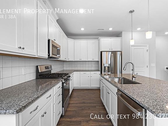 Stunning and spacious 2024 built end-unit townhome near RTP and convenient to I-540. As soon as you get to the second floor you are welcomed to a MASSIVE and OPEN living area, stunning kitchen with granite countertops, white cabinets and stainless steel appliances. Enjoy high-ceilings on all three levels, one bedroom on the main-floor that would be perfect for a home office, and two upstairs, including the primary suite with en-suite bath. Walk-in closets and spacious bathrooms for everyone, plus, step out back and enjoy your very own patio space! Last but not least, check out how MASSIVE the garage is! Enough space for 2 cars or a home gym. Utilize the dog-park nearby or EV charger right outside your door. Don't miss this awesome opportunity!