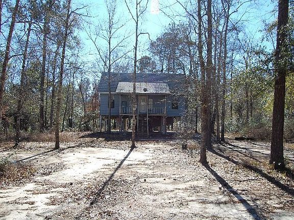 Secluded property with 21.7 mostly wooded acres and a 2 bedroom 1 bath elevated camp style home that is in need of repairs. Fix up the current structure and have a perfect hunting camp/weekend getaway place or could also make a wonderful homesite to build new construction. Improvements are being sold AS IS, WHERE IS and neither the seller nor listing agent make any warranties as to condition of property.