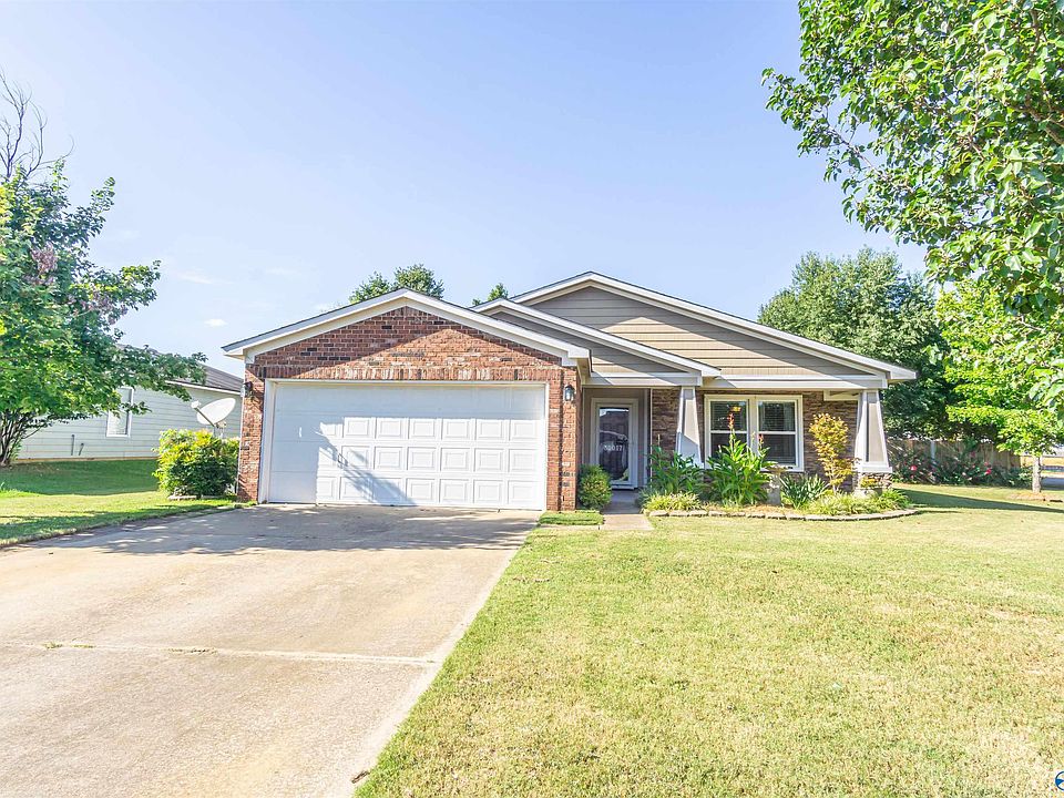 Exceptional move-in ready, single-level home with an inviting open floor plan. Tile floors in kitchen and bathrooms, complemented by a stylish kitchen backsplash and modern stainless steel appliances. Hardwood floors seamlessly flow throughout. Spacious laundry room/pantry combination. Each bedroom has a walk-in closet, ensuring ample storage space. The primary bathroom has an oversized garden tub/shower, with a separate handicap accessible shower equipped with safety rails. Enjoy the privacy of the fully fenced backyard, with a raised garden bed, a cozy firepit, and a generously sized covered patio. This large corner lot is graced with mature trees, adding to the serene ambiance.