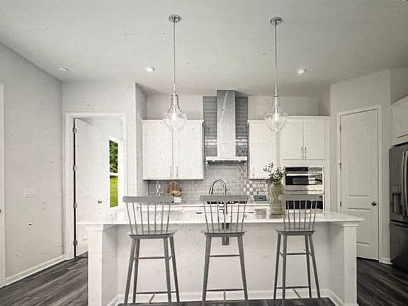 Step into the Graham and you will find an open foyer with 10' ceilings and a flex space that can be used as a home office, sitting room, or whatever suits your needs. The adjacent dining room leads into an open concept family room, breakfast area and gourmet kitchen with lots of natural light and direct access to a back patio- a wonderful space to enjoy a coffee in the morning or nightcap in the evening. The second floor doesn't disappoint with a spacious primary bedroom, an en-suite bath, and an oversized walk-in closet. Two additional bedrooms with a shared bath, plus a convenient laundry room on the same level. **Photos and virtual tour are of a similar completed model. A few of the SMart Selected options in this home include white and gray kitchen cabinets, quartz countertops in Arctic White, Kichler lighting, Kohler fixtures, and Shaw Polaris Plus hardsurface flooring in Oyster Oak.