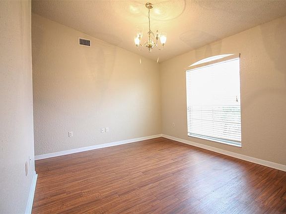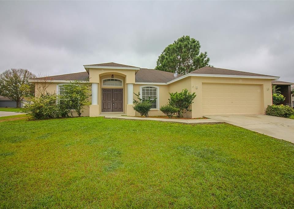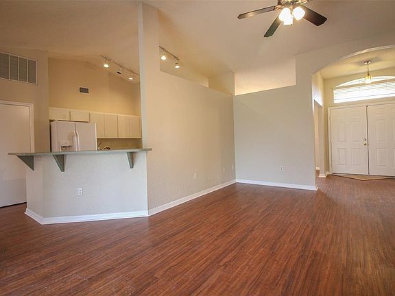 4 bedroom, 2 bath rental home in North Lakeland on a corner lot. The large, open living space features beautiful wood laminate flooring and has sliding doors that open onto a screened and covered back porch. The bright open kitchen features high vaulted ceilings and has a breakfast bar, pantry, and breakfast nook with a large window looking out to backyard. The master suite features en-suite bathroom with double sinks, garden tub and walk-in shower. Bedroom 4 is located at the front of house and can be used as bonus room, office, or bedroom. Sorry, no pets.