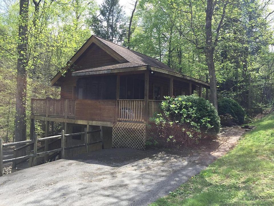 Easy Access and Close to Pigeon Forge Parkway for all the convenience visitors love! This one-bedroom cabin with cathedral ceiling, gas fireplace and full kitchen also has a quaint screened in porch w/ Hot Tub. Lower level could be easily finished to expand your square footage. Newly installed HVAC system!!