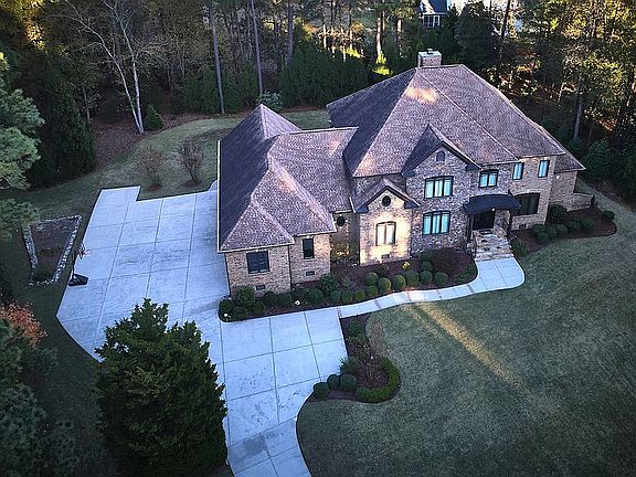 Gorgeous custom built, one owner, cul-de-sac home! Open floor plan with grand curved staircase in foyer; formal dining room; great room with wood burning fireplace/gas starter and built in bar area that is open to kitchen/breakfast room; huge gourmet kitchen with custom cabinets, granite countertops, ceramic tile backsplash, two large islands each with sink, two dish washers, large walk-in pantry & top-of-the-line appliances; breakfast room with built-in china shelves & cabinets: temperature controlled wine cellar (approximately 1,000 bottle capacity) directly off the kitchen; large laundry room with abundant storage; first floor master suite with screen porch access, sitting area and spa-like bathroom with dual vanities, steam shower with jets; bubble tub, his and her walk-in closets with built-ins; 4-car attached garage. Upstairs are 3 guest bedrooms (all with walk-in closets), 2 full bathrooms a huge office/exercise area. Private back yard has screened porch and patio area. Irrigation system has separate well. Christmas light switches, surround sound, tankless water heater. Storage space galore! Two floored walk-in storage areas and third floor attic with pull down is also completely floored. Owner is a licensed North Carolina real estate broker.