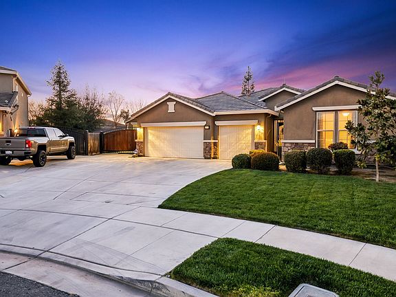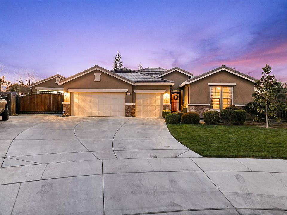 Impeccable 4 bedroom Woodside built home with all of the upgrades on over 12,000 square foot Woodbridge Cul-De-Sac lot. Spacious granite island kitchen with Stainless GE Profile appliances, bar with refrigerator and ice maker, nothing but the best. Bright and open family room with big windows over looking the rear yard. Formal dining room, office with built-in's and Safe, split bedroom floor plan, Spacious owners suite, Separate tub and shower, organized closet. 3 car garage with cabinets and it doesn't stop there. Beautiful mature, manicured backyard lighted and landscaped to the T, with block wall and planters, covered patio overlooking the private pool with water features, fire pit, outdoor concrete bar and a 25' x 40' auto accessible shop with roll up door, 220v and cabinets. Owned 28 panel Solar System. This home satisfies everyone's needs