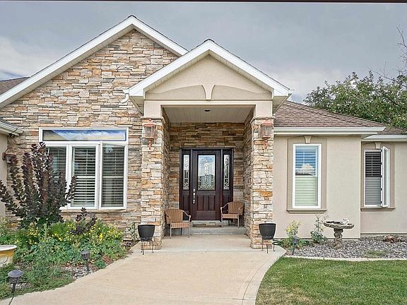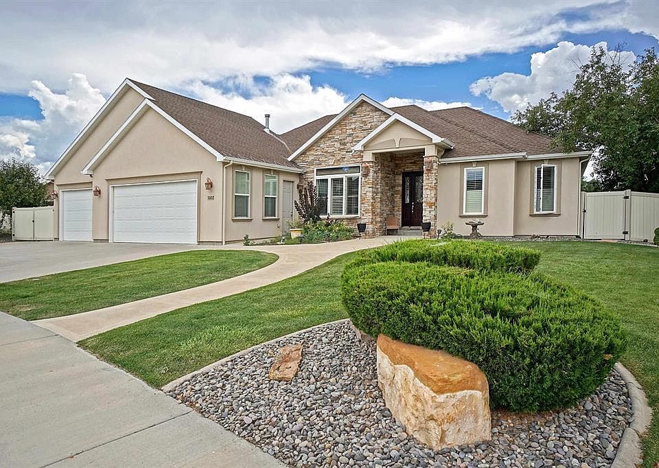 Welcome to your dream home in Montrose, Colorado! This stunning, custom-built home by Prestige Homes sits on a premium lot with breathtaking southern views and backs up to an open space area, offering unparalleled privacy and serenity. Crafted with meticulous attention to detail, the home boasts high-end finishes, including granite countertops, a beautiful trim package, tray ceilings, and a combination of wood floors with inlaid tile and carpet. Both the interior and exterior stonework exude elegance and sophistication. Located in the desirable Preserve community, you’ll enjoy proximity to the Montrose Recreation Center, City Market, Home Depot, and Starbucks, ensuring convenience and comfort at your doorstep. The inviting front walk leads to a grand entrance, showcasing a stately stone gas fireplace, large windows, and maple hardwood floors. The custom tray ceiling adds a unique touch of class. To your right, you'll find a regal office with vaulted ceilings and a closet, perfect for remote work or a quiet retreat. The gourmet kitchen impresses with granite counters, stainless steel appliances, ample cabinetry, a deep sink, and a raised counter for entertaining. Its south-facing position offers picturesque views of the open space, enhanced by tasteful stonework around the windows. The spacious split floor plan includes two comfortably sized bedrooms with eight-foot doors, large closets, and high ceilings, along with a full bath. The main bedroom on the west side features an oversized soaking tub, a luxurious walk-in shower, a huge closet, and beautiful finishes. The outdoor oasis includes unbelievable landscaping with stone features, inviting concrete driveways, and patio areas perfect for entertaining. The oversized two-car garage and separate third-car garage, currently used as a woodshop, offer ample space for vehicles and hobbies. This home is a rare find, blending quality craftsmanship, luxurious upgrades, and a prime location. Don’t miss the opportunity to make this special property your forever home in beautiful Western Colorado. Schedule your visit today and start living the dream!