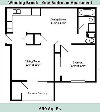One Bedroom, One Bathroom - 1st Floor Our quaint community offers a great location, beautifully landscaped grounds, and nestled in a quiet residential area. Yet, we are only minutes from the best shopping, dining, and entertainment in the area! We offer exceptionally designed 1 & 2 Bedroom Apartment Homes & 3 Bedroom Town homes. Featuring an abundance of natural light, private patio/balcony with storage, wood-burning fireplaces, generous closet space, and washer/dryer connections! Our amenities include a swimming pool with large sundeck, tennis courts, on-site laundry center, covered parking, 24-hour emergency maintenance, and a wonderfully decorated clubhouse. Special Promotions and Prices Subject to Change. Contact us today to schedule your personal tour, and find out why Our Residents Love calling Winding Brook Home!!