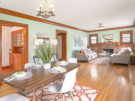 Stunning Craftsman Bungalow has wood floors, built-ins & original woodwork. Renovated kitchen w/custom cabinets, slate counters & stainless appliances. Formal living & dining rms, breakfast nook, 2 bd/1 ba on main. 2 bd/1 bath upstairs, incl. master suite w/full, unpermitted bath & 2 walk-in closets. Partial finished basement family rm w/custom lighting & surround sound. Sunny yard w/patio & garage. Open 4/8 Sat. 12-4 & 4/9 Sun. 11-3.
