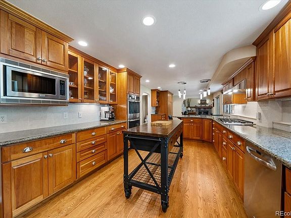 This is the Applewood Knolls home you have been waiting for..only the 2nd time this home has been on the market. As you walk into this completely updated home, the beautiful backyard greets you through the picturesque triple-paned windows. The layout is outstanding with an open kitchen, breakfast nook and family room. The kitchen features stainless steel appliances fit for a chef with a gas cooktop, double wall ovens, cherrywood cabinets, and slab granite countertops. You will find abundant cabinets, including pull-out shelves, a wall of pantry cabinets, as well as a garden window with a view of the tranquil backyard. The dining room with walls of windows is not to be missed and perfect for entertaining small or large groups. The primary bedroom is a relaxing retreat with a spa bathroom and walk-in closet. The secondary bedrooms are larger than most in a home of this era with wonderful natural light. The hallway features an updated 3/4 bath and large walk-in linen closet. Oh..did I mention there is A/C on the upper and main levels as well as an attic fan? The sellers thought of everything during the remodels over the years. If this were not enough, the basement includes a 4th conforming bedroom, 3/4 bath, oversized laundry with hanging racks, an open bonus room ready for that exercise equipment, game room or additional family room. Don't miss the storage at the bottom of the stairs that currently is used as a second pantry. The outdoors of this home is nature at its finest. Mature trees line the edges and the pavilion is just calling for you sit and relax as the birds sing. The charming flagstone stairs lead to a view overlooking the Rocky Mountain Ditch which brings wildlife by. 3 car oversized garage with abundant cabinets, workspace, attic storage and 2 exterior doors. This is a property that must be seen in person to appreciate all it has to offer. It is Move-in Ready and this is the opportunity to make it your own.