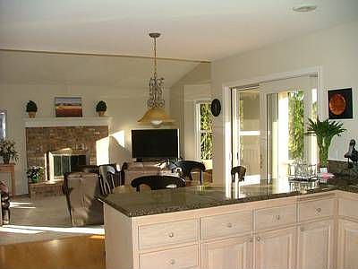 CUSTOM RAMBLER ON HUGE CORNER Sunny southern exposure. Formal living room & dining room. Spacious granite and stainless kitchen has breakfast area and is open to family room with brick fireplace. Oversized newer trex deck overlooks rear fenced yard. Room for kids, pets or garden. RV parking. 2 private beaches, cabana, clubhouse. $399,000