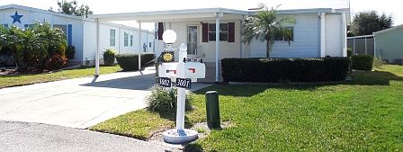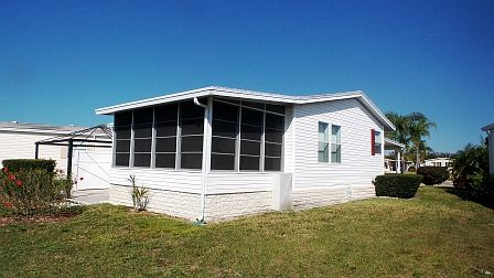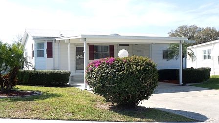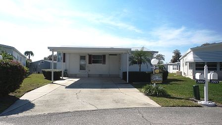 3002 TANGERINE CT. $39,995 FURN AS SHOWN 1995 PALM HARBOR, 26 X 36, 10 X 12 LANAI, REAR PATIO OFF LANAI WITH PERGOLA, NEW ROOF OVER WITH TRANS WARRANTY, AC 7 YRS, COV SIDE BY SIDE PARKING FOR 4 CARS, INSIDE LAUNDRY, OVERSIZED STORAGE SHED. A PALM HARBOR home is one of the leading manufactured homes on the market; they have unique floor plans and features that set them far apart from and way above other brands of manufactured housing, such as quality solid construction, sheetrock walls, high vaulted ceilings, premier lighting fixtures and decorative cabinetry. This sensational home has all of the above and much, much more. Located in lovely RIDGEWOOD ESTATES and setting on a nicely landscaped lot on a quiet friendly cul de sac is this cozy 2 BR/2BA, 26' X 36' FURNISHED gem. The home has recently undergone key upgrades; a new roof over was installed with a transferrable warranty. All new tie downs were done in 2012. The AC system has been routinely serviced. The home also has numerous outstanding and unique features; it has an extended covered carport for parking up to four cars with room left over for a golf cart and outdoor sitting area. At the right of the covered carport area is an oversized storage shed with a workbench and cabinets for storing tools and double entry doors, allowing you to pull a golf cart inside for storing while you are away for extended periods of time. The washer and dryer are inside the home enclosed behind double bi-fold doors in the hall. Off the side set finished lanai is a large paver patio with a canvas covered private gazebo for comfortable outdoor dining or entertaining. Cleverly planted hedges around the perimeter of the patio add to your privacy. Inside the home, the guest bedroom has been equipped with a complete Murphy bed system along one wall. This feature, included with the home, has a value of $6,000. Offered furnished as shown, this “must see” home is listed for just $39,995!! DON'T MISS OUT on an opportunity to own one of the finest and newer manufactured homes in the beautiful Ridgewood Estates community. CALL TODAY, MAKE AN OFFER before it is gone!! Beautifully maintained, RIDGEWOOD ESTATES is an age qualified (55+) gated resort community of premier manufactured homes developed in 1988 with a comfortable and friendly, neighborhood atmosphere. Nestled in the lovely Ellenton, Florida area, Ridgewood offers an affordable and fulfilling lifestyle with a wide range of fantastic features and amenities in a peaceful, tropical setting. This close-knit and active community offers a warm, social atmosphere with many amenities such as 2 clubhouses or event centers with billiards room, exercise room, library and loads of organized activities where lifelong friendships are born. There are 2 heated pools, a hot tub, tennis and shuffleboard courts, horseshoe pit, BBQ and picnic area…something for everyone! Ridgewood Estates welcomes pets. The current lot rent on this home is approximately $661/monthly. Call Sue Shields 859-620-2928 for all the details.