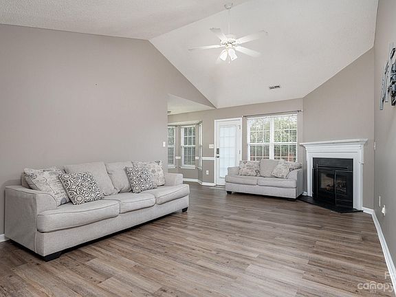 The perfect ranch home awaits you! Just 5 minutes from Sun Valley Shopping, dining and movie theaters! 15 minutes to Matthews and 35 minutes to uptown Charlotte! Move-in ready with updated LVP flooring in Living Room, Dining area, Kitchen, Primary BR and baths. Neutral paint. Large Living Room with vaulted ceiling & gas log fireplace. Bright dining area with bay window and updated lighting overlooks spacious, fenced, private backyard with oversized deck. Large Primary bedroom with vaulted ceiling. En-suite bath has garden tub, double vanity, updated toilet and separate shower. Split bedroom plan. Secondary bedrooms have updated carpeting. Ceiling fans throughout. Roof replaced in 2016. Enjoy the beautiful neighborhood pool and playground!