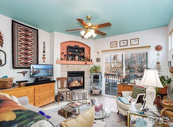 Tucked in and backing to private open space, this ground floor condo offers both great views and privacy. Conveniently located to CSU, foothills, trails, bus line and more. Enjoy low maintenance living with hard surface flooring throughout, newer windows, gas fireplace, central a/c and all appliances included. HOA includes community pool too.