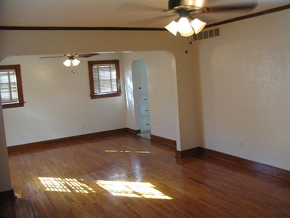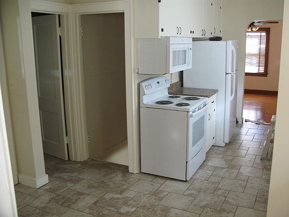 Newly available! Completely renovated 3 bedroom with 1 and 1/2 bath close to downtown and Friend's University. Nicely finished hardwood floors and trim in living/dining room and first bedroom. Kitchen and upstairs bathroom have ceramic tile, fixtures, and appliances (including built in microwave) with breakfast room. Large master bedroom (20 x 20) features his/her closets right off the kitchen. New oil rubbed bronze finished ceiling fans in all upstairs rooms. Painted and looking sharp! Finished basement has third carpeted bedroom/office, a large tiled rec room (or large 4th bedroom great for teens), washer/dryer hookups, and a 1/2 bath (shower and sink). Also includes a walk out to the basement garage with backyard cement alley entrance parking. Nice curb appeal, storm windows, AC and newer furnace for energy efficiency. Fenced backyard with shade trees and cement deck for quiet evenings. $825 rent with a $500 deposit. Pets are ok but have a $20 per pet rent per month. 1 year contract with month to month following. Call Ken at to take a look! Large master BR upstairs and rec room/fourth bedroom down in walkout basement/garage! 1 year lease with month to month following. $500 deposit. Renter pays all utilities. Monthly pet rent of $20 for small dog if applicable.
