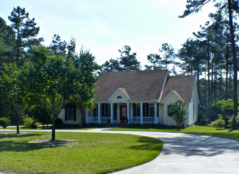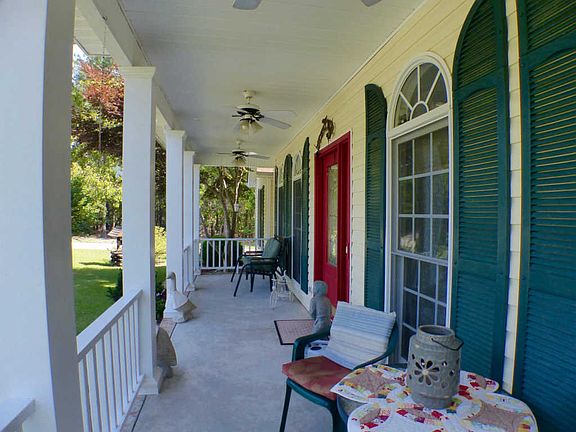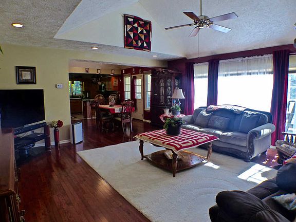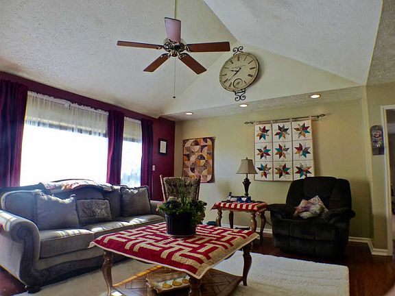 Golf course frontage with panoramic views of the 9th & 18th fairways. This charming ranch style home, with marvelous curb appeal, features a circular concrete drive, rocking chair front porch with ceiling fans, rear porch overlooking the stunning golf course greens, and plenty of privacy. The interior features wood flooring in the living areas, fine berber carpet in the bedroom areas, and wood laminate in the kitchen and bathrooms. High cathedral ceilings, tray ceilings, and recessed lighting throughout add to the openness of the floor plan. The kitchen, with custom cabinets, appliance garage, tile backsplash, and breakfast bar just got a brand new stove. The living area, with cathedral ceiling, fan, and recessed lights, has large picture windows for more of that golf course view!