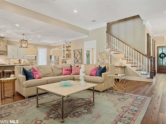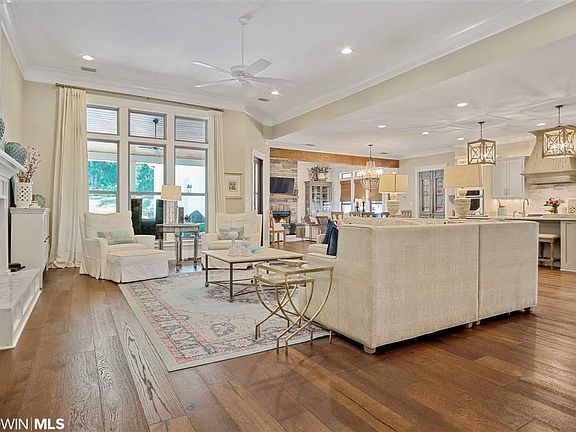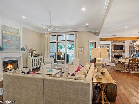 Breathtaking, custom home with so much thoughtful detail throughout! Upon entering this gorgeous 4 bedroom/4.5 bath home, you are greeted by stunning architectural antique doors leading to the formal dining room. The great room boasts 12 ft ceilings, tons of natural light, and a wood burning fireplace crowned with shiplap. It is open to the large kitchen with top of the line Wolf gas-range, standalone ice maker, slow close drawers and a large island with additional seating, as well as the keeping room with gorgeous wood beams and builtins surrounding another wood-burning fireplace, and all wrapped in more shiplap detail. The spacious downstairs master’s retreat features a large bath with soaker tub and separate tiled shower, his and her vanities, as well as a huge designer walk-in closet with smart lighting. Also downstairs, you will find a guest suite with its own bath, an office that could be used as a nursery, as well as a guest half bath. The upstairs landing welcomes you with builtin desks ideal for homework and crafts. The playroom is so fun with its colorful, laminate beach flooring and an extra bonus room! Two additional bedrooms, each with their own bathroom are upstairs, one of which displays a gorgeous wall and shelving of reclaimed wood. The other bedroom includes a large walk-in closet with a “secret” reading nook and play area. Backing up to the golf course, but still offering a ton of privacy, the backyard boasts a lovely covered porch overlooking the fenced, sparkling gunnite saltwater pool with peaceful waterfall. A firepit is also featured adjacent to the pool, allowing for even more outdoor enjoyment! The driveway grants easy access to the pantry and mudroom for a quick unloading of groceries or school/sports gear. Other features include plantation shutters, 8 ft doors, oversized laundry with builtins and sink, tankless water heater, built-in storage underneath the stairs, walk-in pantry and a half bath in garage.
