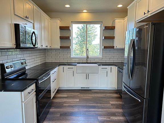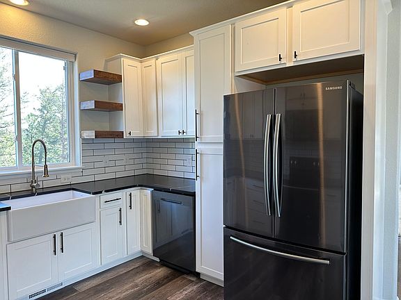 Newly renovated home with new kitchen cabinets, counters, tile, and floors. Custom wood work throughout living room and kitchen, including barn doors, shelves, and mantle. New paint throughout the home and exterior. House has one car garage and great mountain views. Basement has under floor electric heating. New carpet to be installed in living room. Close to Elk Meadow Park. Available May 3. Showings begin April 30. Minimum credit score 700. Owner pays trash. Tenant responsible for gas, electricity, water. Last month rent due at signing. Small dog allowed. Nonrefundable pet fee of $200 due at signing of lease. Monthly pet rent $25. No smoking. One year lease. Pay early each early for one hundred dollar discount.