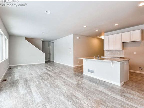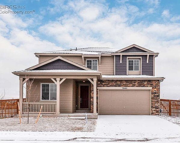 Located In SE Loveland close to Centerra w/excellent shopping & restaurants, this new 2-story built by Century Communities boasts more than just a fabulous location! Open floorplan w/main floor bd, 3/4 bath & well-appointed kit w/granite island, beautiful cabs & wood laminate floors throughout most of main level. Upstairs are 3 bds + loft including master w/large shower, 2 sinks, granite counters & custom tile. Spacious patio, unfinished bsmt, covered front porch & front yard landscaping!