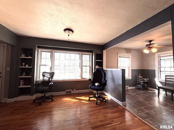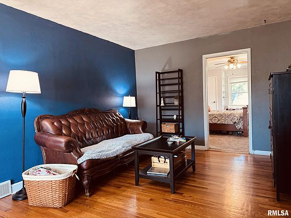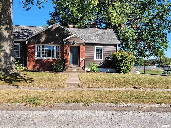 This charming 3-bedroom, 1 1/2-bath Ranch home is nestled in a peaceful residential neighborhood. Offering a classic Midwestern aesthetic, it sits on a desirable corner lot with a spacious yard. The exterior combines brick and siding with a large front yard and a driveway leading to a detached 2-car garage. Inside, you'll find a cozy atmosphere with vintage charm, featuring hardwood floors in the living room, built-in bookcases, an eat-in kitchen, dual closets in the primary bedroom, and a finished basement with a wet bar, game room, and family room. The tree-lined neighborhood is quiet and conveniently located near schools, parks, and shopping, making it perfect for anyone seeking tranquility while still being close to city amenities. This home also boasts several recent updates, including a new roof, gutters, and siding (2020), a new furnace and air conditioner (2021), a new stove and microwave (2021), a garage door (2022), and a water heater, washer, and exterior back door (2023). Additionally, pest and rodent proofing was completed in 2023. Priced below RVM, don't miss your chance to see this lovely home today!