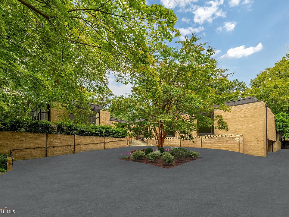 An irreplaceable piece of architectural history, 3003 Audubon Terrace NW, better known as the James Newmyer house, is a modernist masterpiece by legendary architect Hugh Newell Jacobsen. Nestled in the very epicenter of sought after Forest Hills, the residence, like all great examples of fine architectural design, is one with its context, complementing its verdant surroundings in form and orientation. One of the architect’s earlier works after opening his Georgetown-based firm, the Newmyer house showcases his signature style while drawing inspiration from mid-Victorian elements. An L-shaped dwelling perched high on a raised brick podium, this serves as an elevated entry terrace, and wraparound garden to give a park-like impression, bringing the lush surroundings closer in. Subtle nods to more historical architectural styles can be reflected in the standing-seam mansard roofs atop Jacobsen’s classic pale-brown brick cladding and black anodized aluminum bay windows as an explicit byproduct of Victorian inspiration. Although modernist and utterly unique, the residence adheres to the classic principles of symmetry, apparent in the double-doored grand entryway flanked by twin wings. Within, a linear transverse gallery connects major spaces. At one end is the formal living room, a voluminous space whose ethereal ethos is augmented by raised ceilings and generous yet controlled amounts of natural light flooding in from walls of the aforementioned bay windows. Central is a roaring linear fireplace – an ingenious, forward-thinking feature for the time – embedded in a dramatic feature wall framed by thin panes of glass. Central to the main entrance is the formal library, able to be closed off via a set of hidden doors to form a true retreat. Twin bookcases frame a deeply recessed floor-to-ceiling bay window, another Jacobsen hallmark, while a wet bar is discreetly tucked away to one side. On the opposite end of the main gallery, overlooking the rear terrace, is the formal dining room. Embassy-sized, it also features built-in bookcases framing floor-to-ceiling glass. Fully modernized, the chef’s kitchen and breakfast area continues the nautical theme found in the dining room, with a deep blue ceiling and glossy, single slab backsplash. Minimalist white stacked cabinetry provides an almost hidden backdrop and conceals a suite of commercial grade equipment, including double Bosch ovens. In another futuristic twist, only a peninsula separates the kitchen from the adjacent step-up family room, creating a true open space not commonly seen at the time. The latter showcases extensive wraparound built-ins and opens directly onto the pool deck. Geometric in shape to mirror the rest of the home, the irregular swimming pool is substantially proportioned and a center piece to the outdoor space. The adjacent pool house features a wet bar, full bath, and changing room. An adjacent outdoor terrace offers generous seating and al fresco dining space. Jacobsen’s most distinguishing trademark was a ‘pavillion’ layout where particular rooms are arranged into separate pavilions. As such, public and private quarters are distinguished, with the bedroom wing tucked away for ultimate privacy. Within this space is a sumptuous primary suite and three additional bedrooms. A comprehensive, self-sufficient guest suite is found on the lower level, containing a full bath, kitchen, and separate exterior entrance. Also discreetly hidden away is the attached garage, accessed via a side drive off the main motor court and unseen from the facade to minimize unsightliness. The property also owns a third of a tennis court, communal with two neighbors. A once-in-a-lifetime offering, one-of-a-kind in every way and situated in one of Washington’s most desirable neighborhoods, the James Newmyer house has and will continue to be immortalized as one of the finest icons of visionary modernist architecture in history.