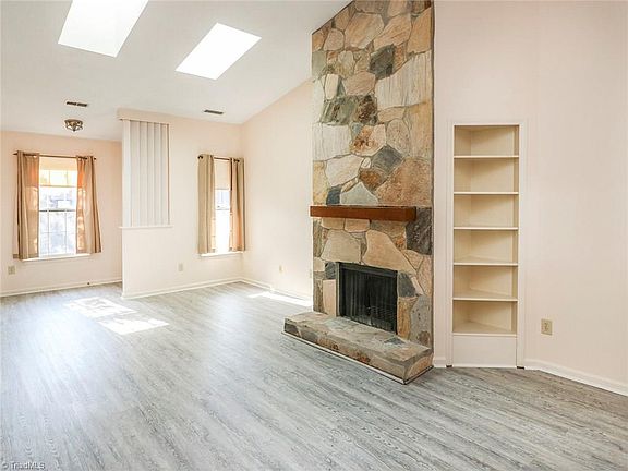 Move in Ready! 2BR/2BA townhouse located in Pinewood Forest. Large open Living room w/ gorgeous floor to ceiling stone wood burning fireplace, laminate flooring, and vaulted ceilings. Spacious eat in kitchen w/counter tops and cabinet space, laundry closet w/ new flooring and skylight for tons of natural lighting. Spacious master bedroom w/ attached master bath. Fully fenced back patio w/ storage closet. This home is conveniently located to shopping restaurants and major thoroughfares. Call or Text 336-525-1289