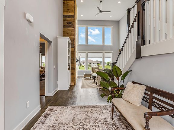 Live your best life in this Timberlin-built show-stopper of a home, offering 5 bedrooms, 4.5 baths, a walk-out lower level, 4-car heated garage, a plethora of storage, signature built-ins, and set against a backdrop of serene water views and lush landscape in the desirable Grey Oaks neighborhood. Upon entering, you're greeted by soaring ceilings, exposed wood beams, hand-scraped hardwood floors, an open staircase, stunning views, large foyer, and soft inviting colors. Step into a private home office/sitting room sanctuary where productivity meets comfort with floor-to-ceiling stone gas fireplace and built-in bookcases/desk. Bathed in natural light, the great room beckons with its rustic charm, boasting a new fireplace, 2-story stacked windows and open to your chef's eat-in kitchen with a grand quartz-topped island, butcher block prep area, and walk-in pantry. Adjacent, the large dining area offers a seamless transition to outdoor enjoyment and entertainment on the 2-tier deck and your backyard oasis. A well situated locker area and spacious laundry room are conveniently located off the kitchen and near the chic guest bath. Retreat to the primary suite under the charm of a ship-lap vaulted ceiling with more built-ins and views. The gracious spa-like en-suite features an oversized garden tub, walk-in tiled shower, dual vanities w/quartz countertops, and private water closet. Upstairs, you'll find three sprawling bedrooms, each boasting its own charm, ensuite bath and ample closet space, ensuring privacy and comfort for all. The walk-out lower level invites entertainment and relaxation with a captivating wet bar, a sizable fifth bedroom w/walk-in closet, a full bath, a home gym, a family room nestled beside a floor-to-ceiling stone fireplace, creating an ambiance of warmth and luxury, and an additional 'rec' space for more seating or games. Outside, the mature, flourishing landscape frames the property, while the tranquil waters of the pond provide a picturesque backdrop. Residents of Grey Oaks enjoy access to an association pool, nearby walking trails and perfectly situated near award-winning schools in Southwest Allen County.
